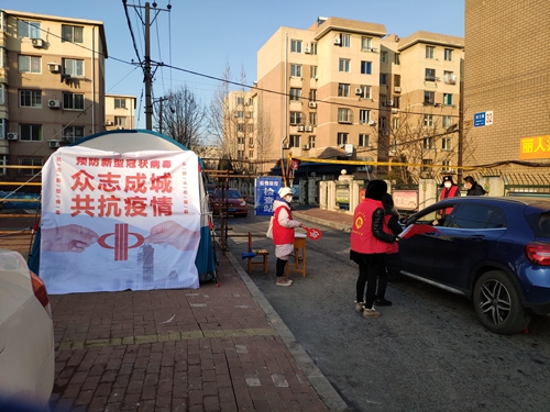 学生第二党支部预备党员孙敏艳,在看到大连市发布的志愿者招募信息后,和自己双胞胎姐姐第一时间到所在社区报名加入志愿巡逻队,负责社区出入口疫情防控检查进入辖区的人员和车辆是否携带通行证并进行信息登记。东北的冬天还是很冷的,顶着严寒,冒着风险,她依然微笑着每天坚持上岗。“检查站刚设立时个别居民不太配合,出入不随身携带通行证,工作开展比较困难,经过我们不断耐心地讲解政策,现在居民都非常理解和配合。”她说到,“希望通过自己小小举动,使更多的人能增强防护意识,远离感染危险。跟那些冲锋在前线的人比起来,我这根本不算什么,只不过做了自己应该做的。”