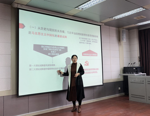 会上,马克思主义学院康燕副教授做了题为《深入理解习近平治国理政新理念新思想新战略》的专题报告。报告中,康燕详细解读了习近平治国理政新理念新思想新战略的历史背景、逻辑体系、主要内容和重大意义等方面的内容。她指出,习近平治国理政新理念新思想新战略是马克思主义中国化的最新成果,是新形势下我们党治国理政的科学指南,是实现中华民族伟大复兴中国梦的思想旗帜。