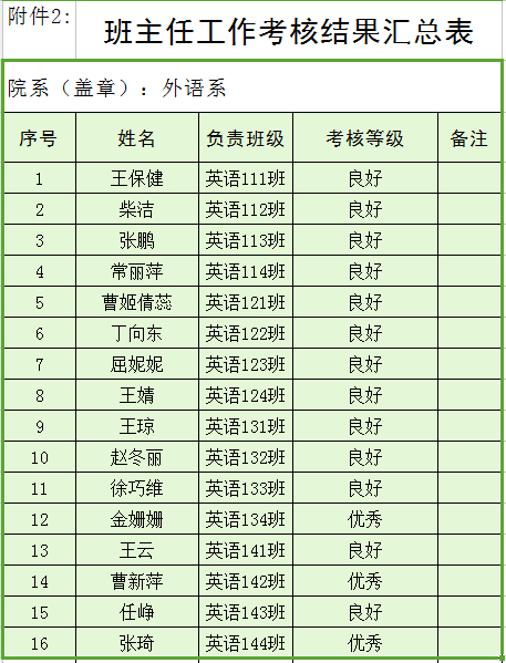 » 外语系2014-2015学年第二学期班主任工作考核结果