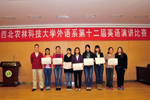本次比赛采用2014年“外研社杯”全国英语演讲大赛的形式,即分为定题演讲、即兴演讲和回答问题3个环节。定题演讲的的题目是“change the unchangable”。在两个多小时的角逐中,13名选手在台上尽情挥洒才华,用流利的英语阐述自己的观点,他们标准的语音、流利的表达、敏捷的思维、睿智的问答赢得了在场观众的阵阵掌声。经过激烈角逐,英语124班符果荣获特等奖,英语121班颜欢、英语132班刘嘉怡荣获一等奖,英语122班潘雨清、李晓芸、英语143班罗美琪荣获二等奖,英语121班吴金婵、英语134班杨烁、英语123班郑小粤、英语132班胡海桐、段翔宇、英语121班吴金婵、英语142班贺琳荣获三等奖。