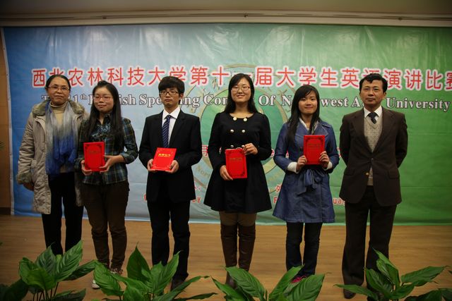 演讲赛分为命题演讲、即兴演讲和回答问题3个环节,在两个小时的角逐中,12名选手在舞台上尽情挥洒才华,精彩的演讲不时博得台下同学的阵阵掌声。经过激烈角逐,外语系杨丹妮同学荣获特等奖,人文学院唐暨鑫、资环学院张悦2位同学获得一等奖,外语系阮书翎、人文学院刘洪波、食品学院张月、经管学院王恒等4位同学获得二等奖,农学院何雨洁、创新学院王蔚、生命学院张艳军、理学院刘莉、葡萄酒学院王陶等5位同学获得三等奖。
