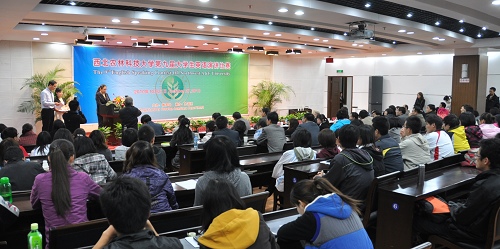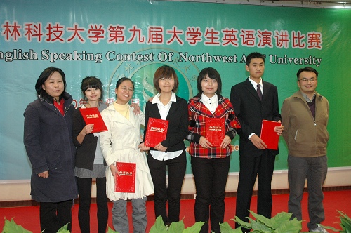 我校大学生英语演讲比赛每年举行一次,由教务处主办、外语系承办,目前已举办九届。在比赛中获得一等奖的选手将有机会代表我校参加省级和国家级的重要外语比赛活动。