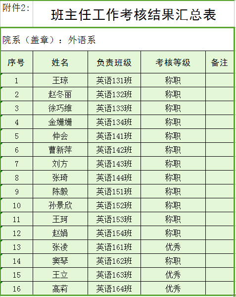 » 外语系2016-2017学年第一学期班主任工作考核结果