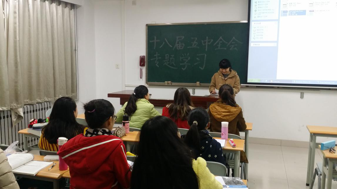 为认真贯彻、落实党的十八届五中全会精神学习任务,外语系各团支部纷纷利用课余时间,采取学习心得交流、图文展示等多种形式开展了十八届五中全会精神专题学习活动。