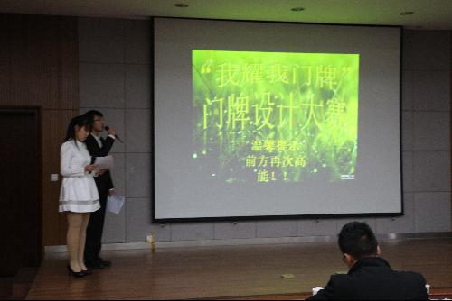 表彰大会首先展示了参赛选手们的作品,选手们从校园绿化,食堂,图书馆等各个地方细心观察,设计了别具风格的标语,既有“唏嘘两少年,仁心护微草”此类文学风味浓厚的标语,也有“把车给本宝宝停好!还上天了!”此类新奇古怪的网络用语,展现了选手们丰富的想象力。对于“我耀我门牌”的宿舍门牌设计,选手们从各个方面收集素材,展现了宿舍独特的有爱风格。