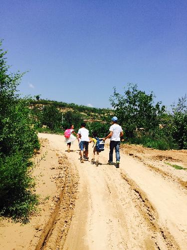骄阳当空今天上午的支教生活也到了尾声。当队员收拾完教室,送小朋友回家的时候。有三位小朋友却有了小情绪。因为想知道我们的住址,而队员却不说,是因为住处离支教的活动中心分属于小程村和碾畔村两个村子,需要要走几公里的山路,出于安全考虑,队员并没有回答小朋友的问题。当队员把小朋友送回家返回时,他们突然变得很“叛逆”,一路躲躲藏藏跟我们后面。由于山路崎岖,队员只好或抱或拉,领着小朋友回了家。午觉后,队员又踏上原路送小朋友回家。