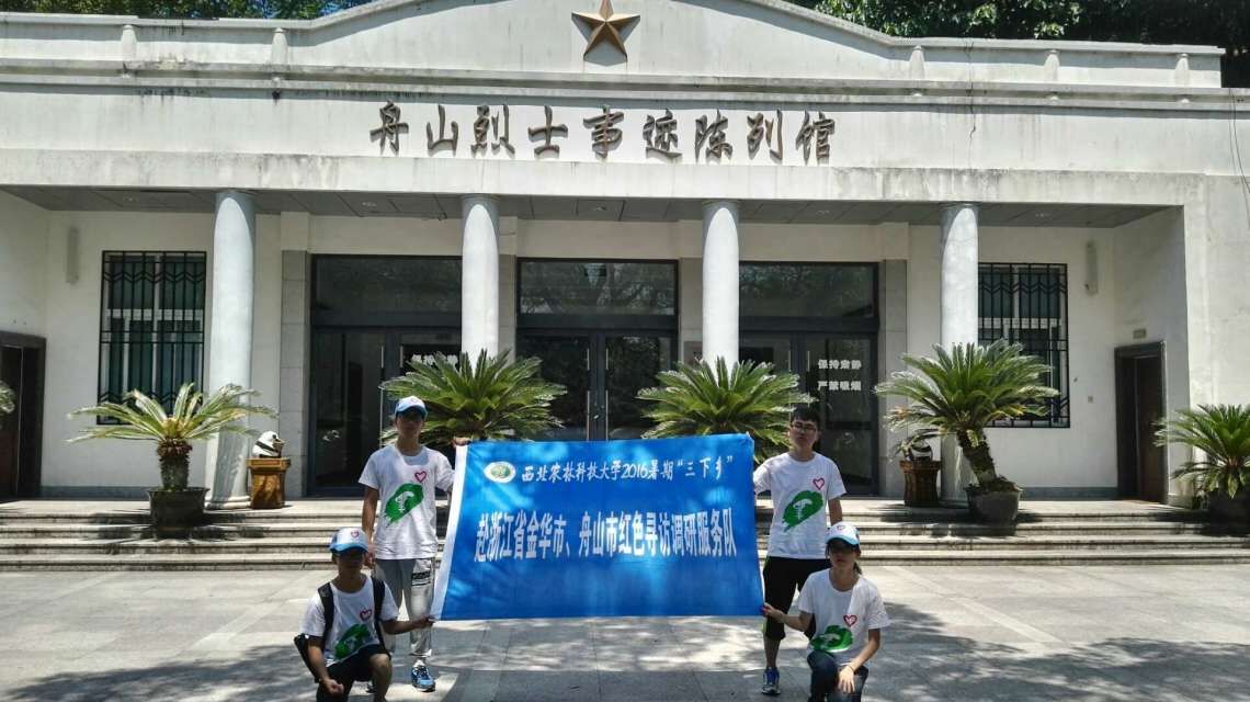 2016年8月3日,MILE米乐中国2016暑期三下乡——“赴浙江省金华市、舟山市红色寻访调研服务队”在舟山烈士事迹陈列馆展开了第三天活动。队员们参观了姚公池及姚公殉国处,了解了姚怀祥先烈的忠义事迹,对他殉国身死的事迹感到敬佩不已。而后参观了舟山烈士事迹陈列馆,在图文并茂的陈列馆中感受到了先烈们的一腔爱国之情。最后队员们在庄严肃穆的忠魂堂前向革命先烈寄托了我们的哀思与怀念,追思着他们的忠肝义胆、壮志凌云。
