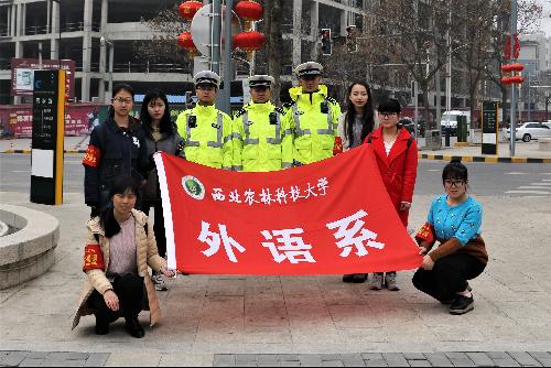 为响应校团委在全校团员青年中开展的“学习习近平总书记讲话,做合格共青团员”教育实践活动,发挥青年团员志愿服务的精神,契合“学雷锋月”主题精神,以及在市民中宣传普及交通法律法规。3月18日,外语系团工委社会实践部组织选派多名学生志愿者在杨凌示范区康乐路与西农路交叉口等多处易拥堵路段进行协勤服务。