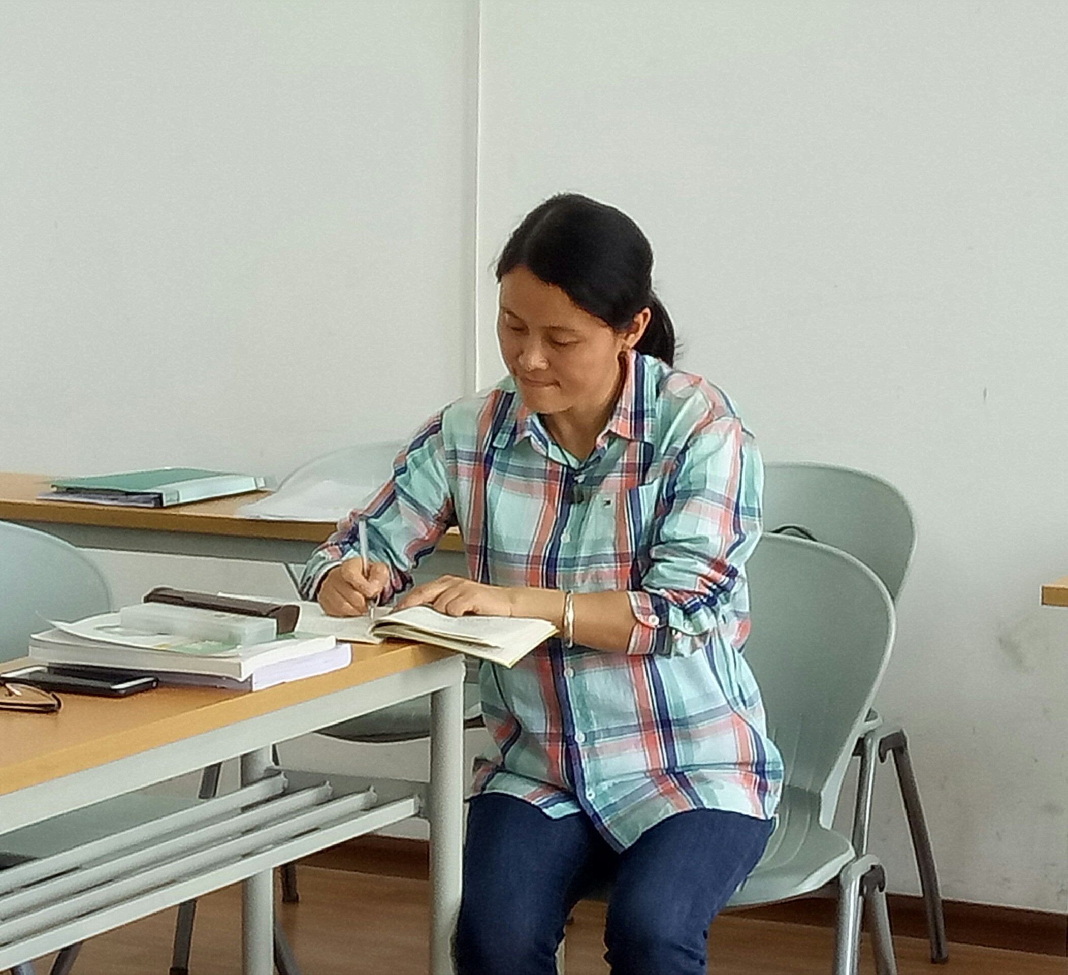 高莉老师认真记录交谈内容