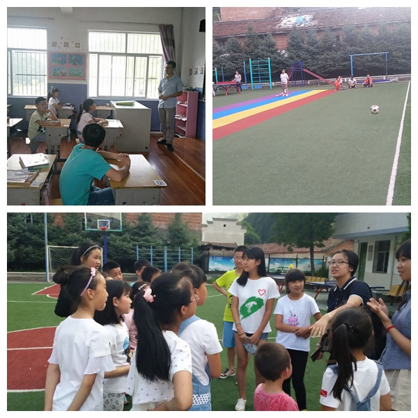 经过一天和小朋友们的接触,我们了解到有许多孩子的爸爸妈妈都在外打工,把他们留在这里,陪伴他们的有爷爷奶奶,可是这些远远不够,孩子们很需要父母的关爱。当看到村里为孩子们建设绿色的足球场,多媒体教室,器乐演奏厅的时候,我们感受到了村子对孩子们成长浓浓的关爱。几天的支教服务让我们成长,也使我们更加明白了志愿服务的宗旨:即使在困难的环境下也要有一颗向上的心。队员们始终愿意为孩子们带去温暖,带去快乐,将爱传递下去,为乡村教育事业的发展尽绵薄之力。