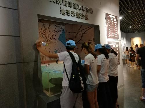 8月13日上午,外语系赴台儿庄“红色寻访”服务队来到了依托台儿庄革命烈士陵园而建,坐落在古运河北岸,台儿庄城区中心,占地100亩的台儿庄战史陈列馆。此行的目的是借参观所带来的视觉冲击和内心感受,来帮助队员们更身临其境地感受从古代到现代战争的激烈、残酷,了解不同时期不同英雄人物的英勇气概,学习他们大无畏的牺牲精神。