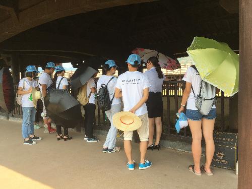 10日中午简要地就餐、休息后,彭镇长带领队伍参观了里耶古城遗址。著名的“中华第一井”及3.6万枚秦简就是在此被发现的。烈日下,讲解员领着队员耐心细致地讲解遗址知识,热浪撩拨着队员们穿越秦朝一探究竟的心。