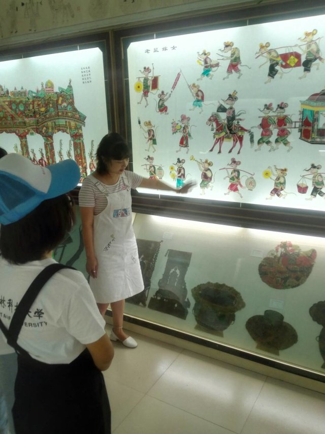 调研首日,团队成员来到华阴市文化馆,参观皮影展厅,了解皮影与老腔的发展历程。当讲到皮影与老腔的关系时,老师着重加以深刻阐述。她讲到:“老腔在后台唱便是皮影,走上前台来就是原生态老腔了。”
