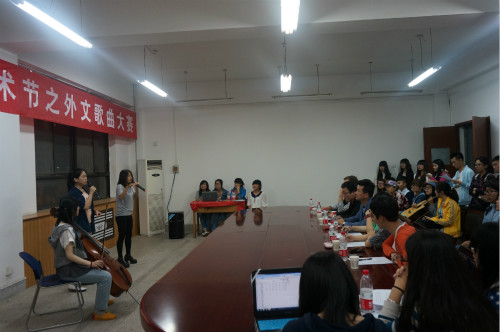 5月5日–5月12日,由我系承办的第一届外语文化艺术节之外文歌曲大赛拉开帷幕。