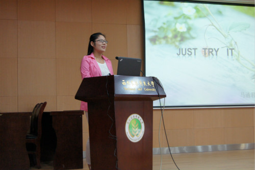 5月27日下午,由校团委主办、我系团工委承办的大学生百场素质教育报告会之《Just try it》在北校区绣山活动中心南报告厅举行。保送山东大学外国语学院、2010级优秀毕业生马函君结合自身经历从不同方面展示了丰富多彩的大学生活。