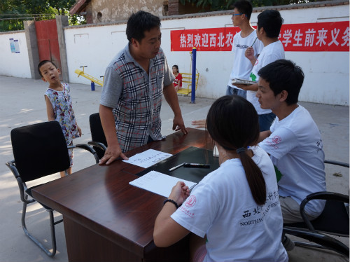 一抵达目的地,队员们顾不上休息,便向村长了解黄家寨村的具体情况,刘村长热情细致地向大家一一进行说明。他表示,村里的孩子比较多,村民们都比较重视孩子们的学习,但因为黄家寨村距离咸阳较远,周边也没有补课班,所以大多数的孩子只能在家自学,村民们因为文化层次较低的问题也不能对孩子进行学习上的指导。经过跟村长的一番交流,队员们商讨决定,首先了解村里需要上课学生的人数、层次以及解决上课地点成为当下需要解决的首要问题。在村长和当地村民的帮助下,队员们借来黑板、粉笔,收拾出村委会的三间房子,作为上课地点,当日下午5点在村委会设置报名点接受各年级学生报名。