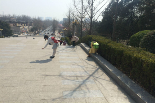 沐浴着和煦而又温暖的春风,同学们按照既定的时间携带清扫工具准时到达五台山下集合。虽然本学期同学们正在紧张的备战即将到来的英语专业四级考试,但同学们对志愿服务的热情有增无减。分成小组后,各小组同学积极展开活动,对本小组负责区域展开了“地毯式”清洁。正值午后惬意的时光,路过五台山的行人们看到同学们的举动不仅开始自觉地将手中的垃圾置入垃圾桶内,更是赞许的向同学们竖起了大拇指。