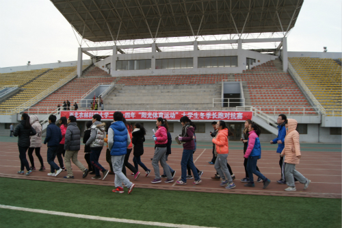 动员大会上,学生会体育部相关负责同学首先宣读了本次阳光体育冬季长跑活动的安排、要求及注意事项,并提出了安全注意事项及奖惩措施。随后,长跑活动正式开始。本次活动正值寒冬时节,气温较低。可是却没有阻挡同学们锻炼的热情。大家排着整齐的队列,绕着田径场匀速慢跑,并不时地喊出斗志昂扬的口号。活动结束后,同学们纷纷表示,平时生活中还是缺乏锻炼、身体素质还有待进一步增强。