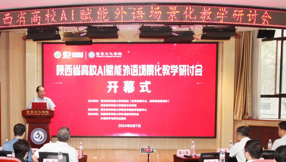2024年9月7日上午,“陕西省高校AI赋能外语场景化教学研讨会”在MILE米乐集团7213报告厅隆重开幕。本次会议以“数智赋能引领外语教学创新与发展”为主题,汇聚了陕西省高校的专家学者,旨在深入探讨如何借助人工智能技术推动外语教学的创新与实践。